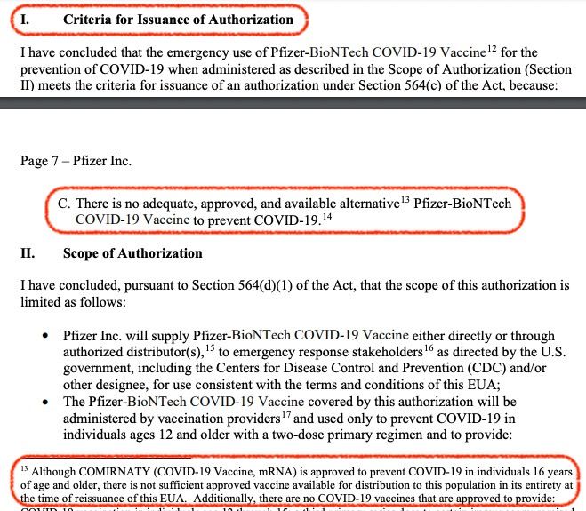 Consider the case of the "FDA approved" Pfizer vaccine. That's complete bullshit perpetrated by the FDA and the news media. Here are the facts: