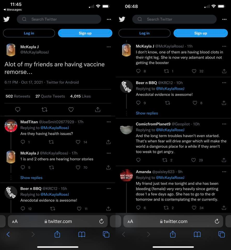 It's increasingly common to see a vaccine remorse post go viral with others chiming in how they wish they hadn't gotten it. Cases in point: