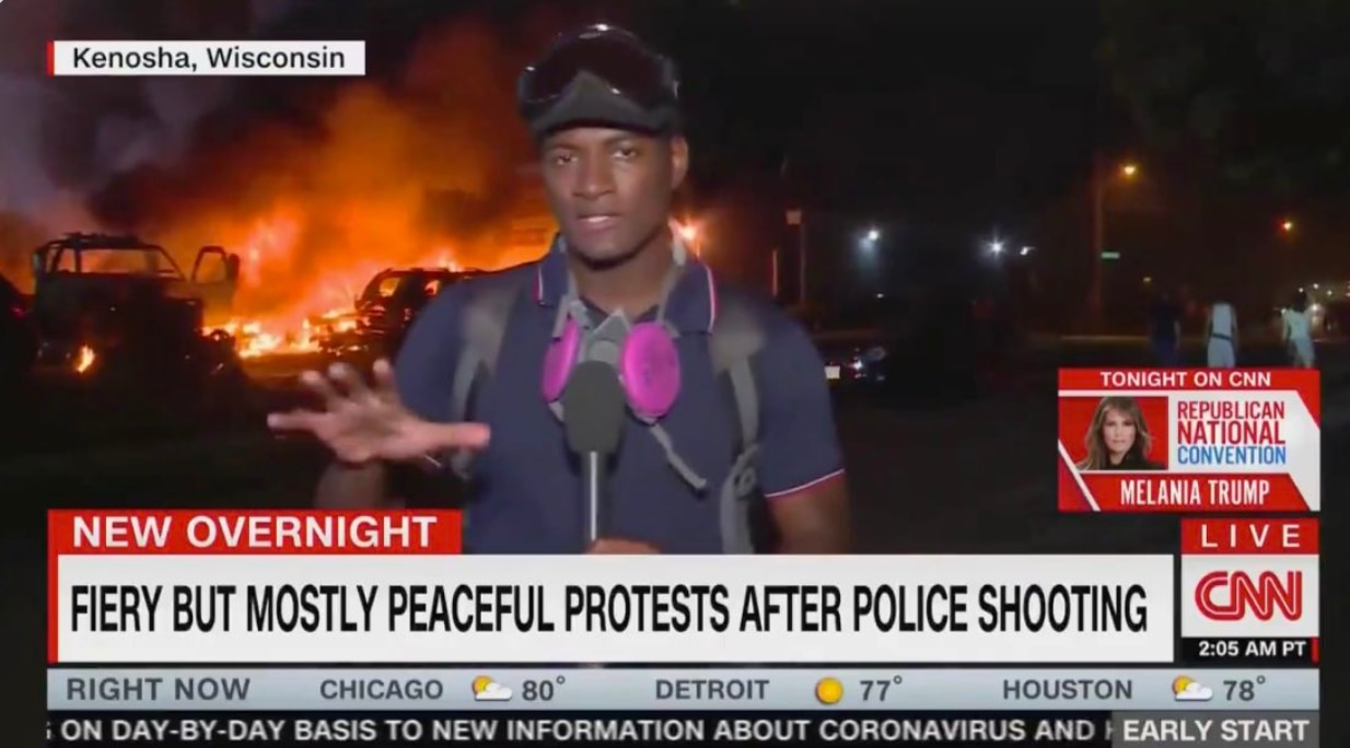 The way that mainstream media downplayed the violent BLM+Antifa riots of 2020 is a now-classic example. BLM burned down and destroyed towns and cars while the news assured us those were "peaceful protests".