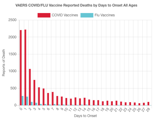 Wha-ha-ho... shit! There are about 60 COVID vaccine deaths reported per day in the US and there's good evidence that's underreported by at least 10x - numerous doctors have said they don't have the time or the personnel to fill out the tedious VAERS reports. These vaccines are by far the deadliest non-military technology ever made by humans in terms of people killed to date!
