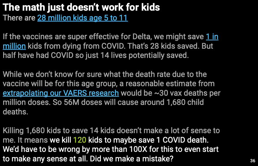 I guarantee that more kids will die from the jab than would have died from COVID if unjabbed. Because the risk of a healthy kid dying from COVID is near-zero.