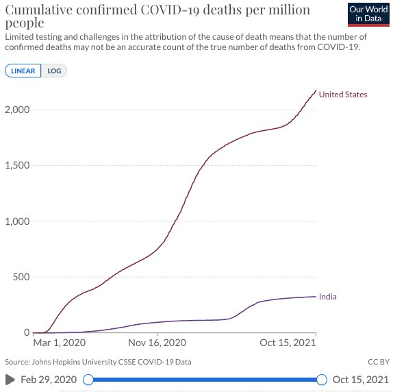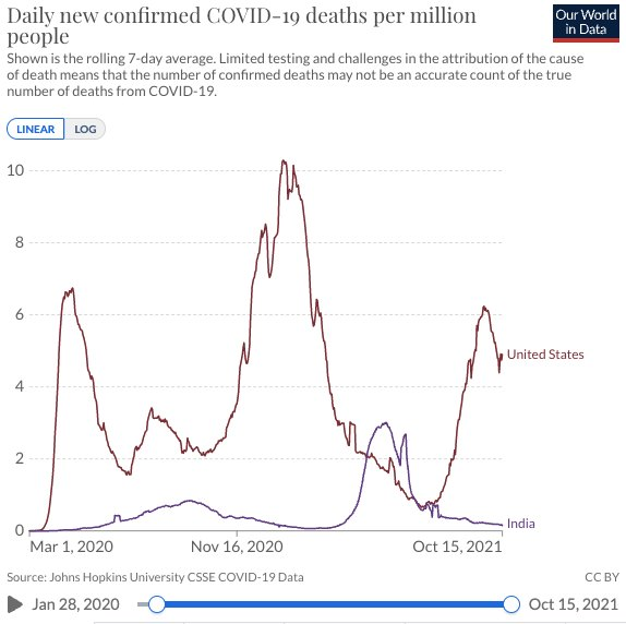 The US has gone all in on the vaccines, same as many countries. India, meanwhile, has mostly passed on the vaccine in favor of safe, effective, and cheap Ivermectin - you know, the "horse dewormer" that has been so wrongfully slandered by the same government organizations that are in bed with the same companies that want to sell you the vaccine.